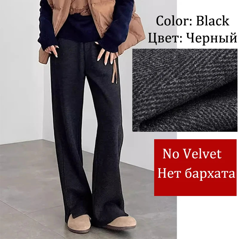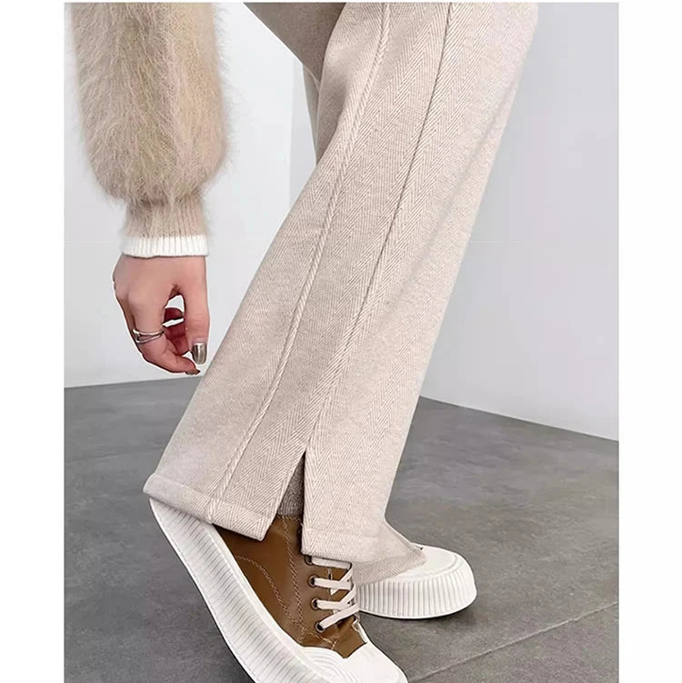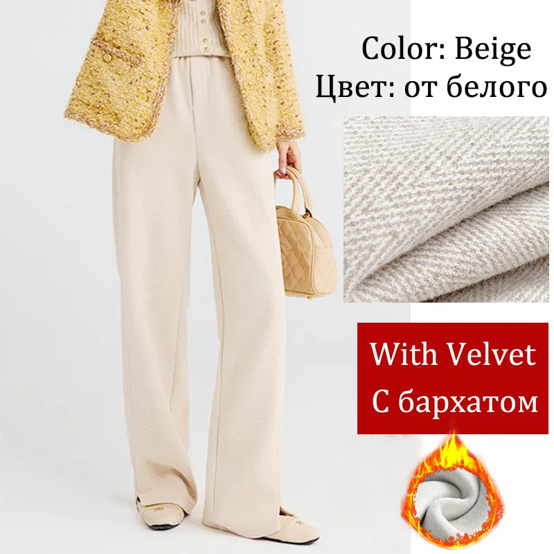 High-Waist Wool Trousers - Fleece-Lined Ultra-Soft